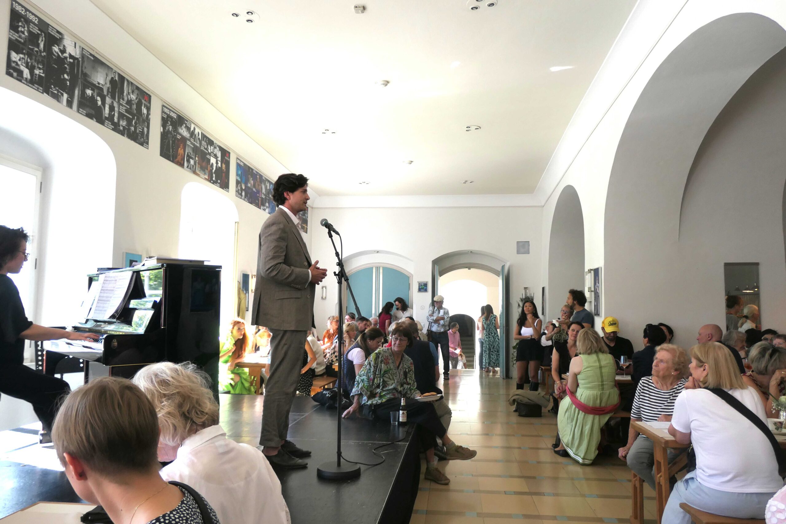 Ein besonders gelungener Gag war die kleine Hommage an Siegfried und Roy, die beiden Magiere aus Deutschland, die ihre Zauberkünste in Las Vegas zeigten. Die beiden „Zauberlehrlinge“ Valentin Brunner und Paul Färber durften den Generalmusikdirektor mit viel Hokuspokus und schneller Choreografie in einen weißen Tiger verwandeln.