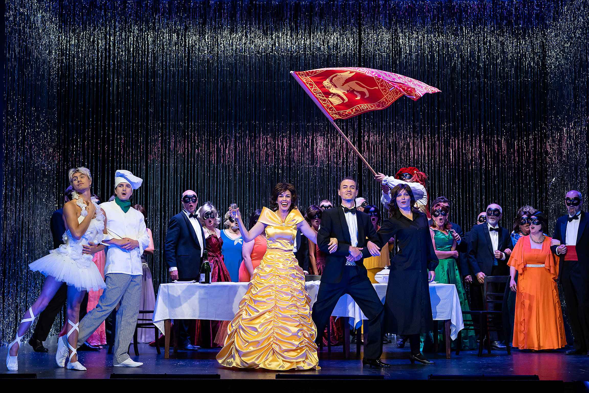 Fünf Jahre, eine Pandemie und drei Lockdowns später swingt es wieder am Landestheater Niederbayern: Mit „Coleman’s Twelve“ wird die erfolgreiche Show „Coleman’s Eleven“ fortgesetzt – nach dem gleichen Prinzip, mit den gleichen Solisten und sogar zum Teil mit den Kostümen aus der ersten Show. Generalmusikdirektor Basil H. E. Coleman leitet abermals die swingende Unterhaltungsformation und einen Streicherapparat, alles Musiker aus der Niederbayerischen Philharmonie, Margit Gilch führte wieder Regie und mimte Bardame Meggy und Ursula Geef entwarf die schwungvolle Choreografie.