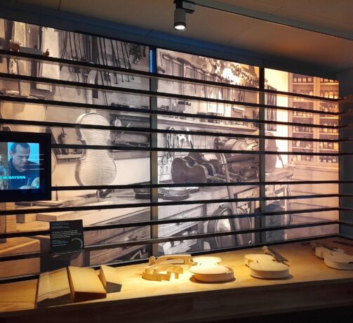 Den Instrumenten und ihrem Bau ist eine Abteilung gewidmet. Schön, dass man den Geigenbau in Bayern nachvollziehen kann, der in Füssen entstanden ist und in Mittenwald seinen Höhepunkt hatte. Auch die Blasinstrumente finden ihren Platz. Ein besonders exquisites und wertvolles Instrument ist eine Tenorposaune aus Altötting von 1576 und Silbertrompeten aus Nürnberg aus dem 18. Jahrhundert. Auch der Zitherbau und die Rolle von Sisis Vater – Herzog Maximilian Joseph wird gewürdigt; der Regensburger und Passauer Instrumentenbau wird gestreift. Als besonderes Experiment sticht die Glasdarabuka von Heinz Grobmeier (Hemau) hervor, deren Corpus aus der Glashütte Poschinger stammt. Aus dem 20. Jahrhundert werden z. B. auch die Klarinette von Liesl Karlstadt und die Zither von Karl Valentin gezeigt.