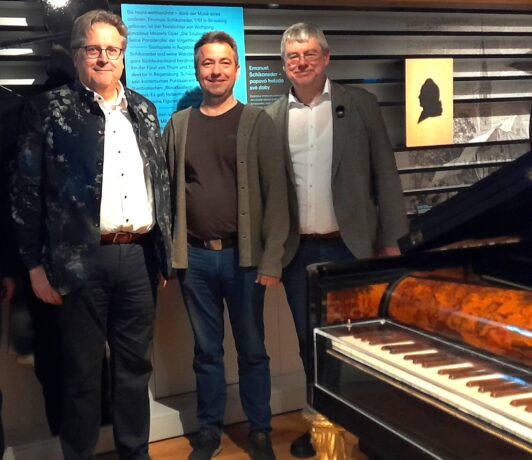 „Neuland“ gibt es in mehrfacher Hinsicht. Erstmals wird sich eine Landesausstellung der Musik widmen. Erstmals ist eine durchgehendes akustisches, inhaltlich divers tönendes Klangbild gespannt, vom Einlass bis zum Ausgang. Und: Erstmals wird eine immersive Ausstellung gezeigt, was heißt: Die Schau bietet ein multimediales Erlebnis mit vielen Mitmachstationen, „ohne die wissenschaftliche Seite zu vernachlässigen“, wie Dr. Richard Loibl, der Direktor des Hauses der Bayerischen Geschichte in Augsburg betont. Der gebürtige Hengersberger ist seit 2007 an der Spitze dieser Institution, die seit 2019 mit dem Museum der Bayerischen Geschichte ein weiteres Standbein in Regensburg hat. Neben der Landesausstellung, die jährlich durch Bayern tourt, gibt es weitere Ausstellungsformate sowie eine breite Palette an Publikationen. Loibl betont bei seiner Begrüßung, die Ausstellung verstehe sich als Zeitreise durch die bayerische Musik. „Wir haben eine Lust am Erzählen und eine Lust am Herzeigen.“ Der bayerische Kunstminister Markus Blume gibt zu verstehen, dass er die Ausstellung als Liebeserklärung an den Freistaat versteht.